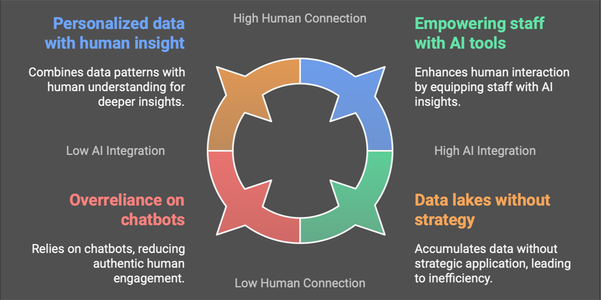 Focusing on customer-facing AI (like chatbots) often backfires, damaging trust and satisfaction. Instead focus on people. Use the AI as a tool for augmenting the unique human experience for both team and clients.